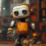 9:16 imgtovidcute rusty robot in the scene walking and looking up. Junkyard.